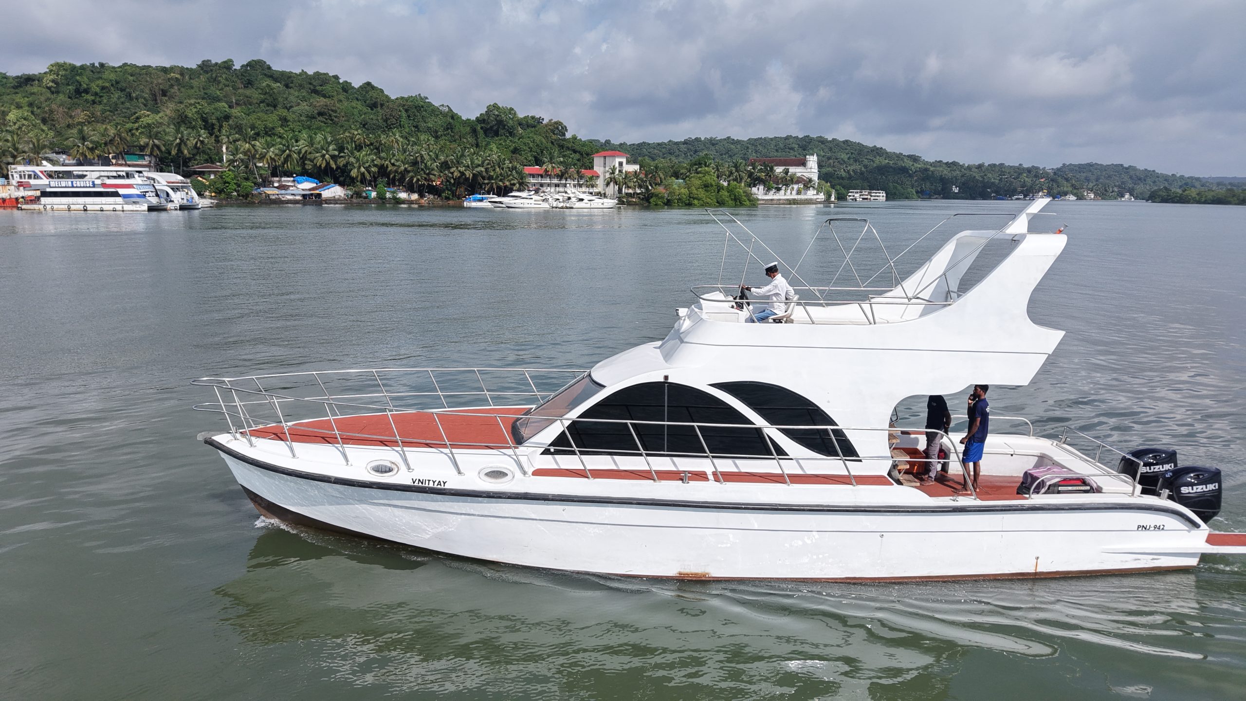Our Yachts Ouy Yachts YT-01 Capacity: 10 GuestsPrices: 12,000/- Onwards Book Now YT-02 Capacity: 10 GuestsPrices: 12,000/- Onwards Book Now YT-03 Capacity: 8 GuestsPrices: 11,000/- Onwards Book Now YT-04 Capacity: 15 GuestsPrices: 16,000/- Onwards Book Now YT-05 Capacity: 15 GuestsPrices: 20,000/- Onwards Book Now YT-06 Capacity: 12 GuestsPrices: 17,000/- Onwards Book Now YT-07 Capacity: 8 GuestsPrices: 12,000/- Onwards Book Now YT-08 Capacity: 16 GuestsPrices: 20,000/- Onwards Book Now YT-09 Capacity: 16 GuestsPrices: 20,000/- Onwards Book Now YT-10 Capacity: 25 GuestsPrices: 25,000/- Onwards Book Now YT-11 Capacity: 18 GuestsPrices: 19,000/- Onwards Book Now Sail with us — your perfect Goa experience starts here. Have a question or want to book your dream yacht experience?Our team is here to help you plan the perfect cruise — whether it’s a romantic evening, celebration, or corporate event. Get in Touch